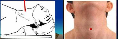 ● 頸中線甲狀軟骨下緣與環(huán)狀軟骨弓上緣之間即為環(huán)甲膜穿刺點(diǎn)。