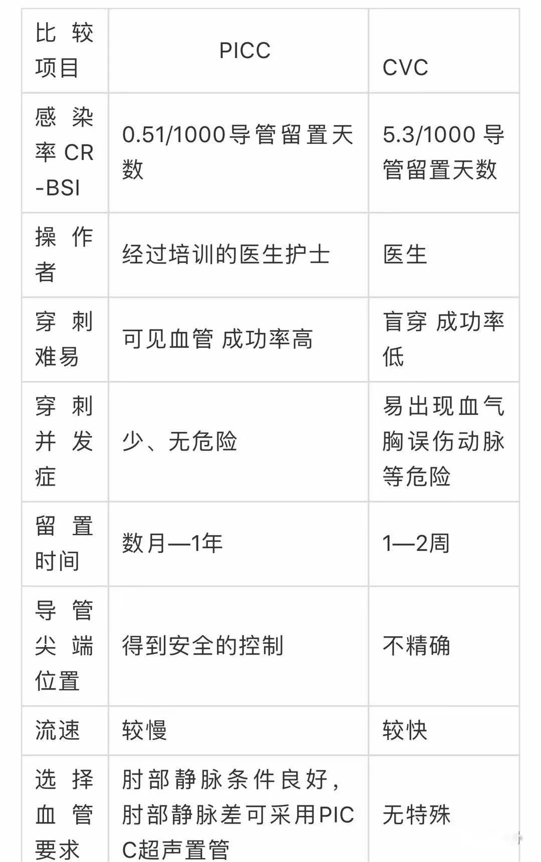 PICC 與 CVC 導管對比